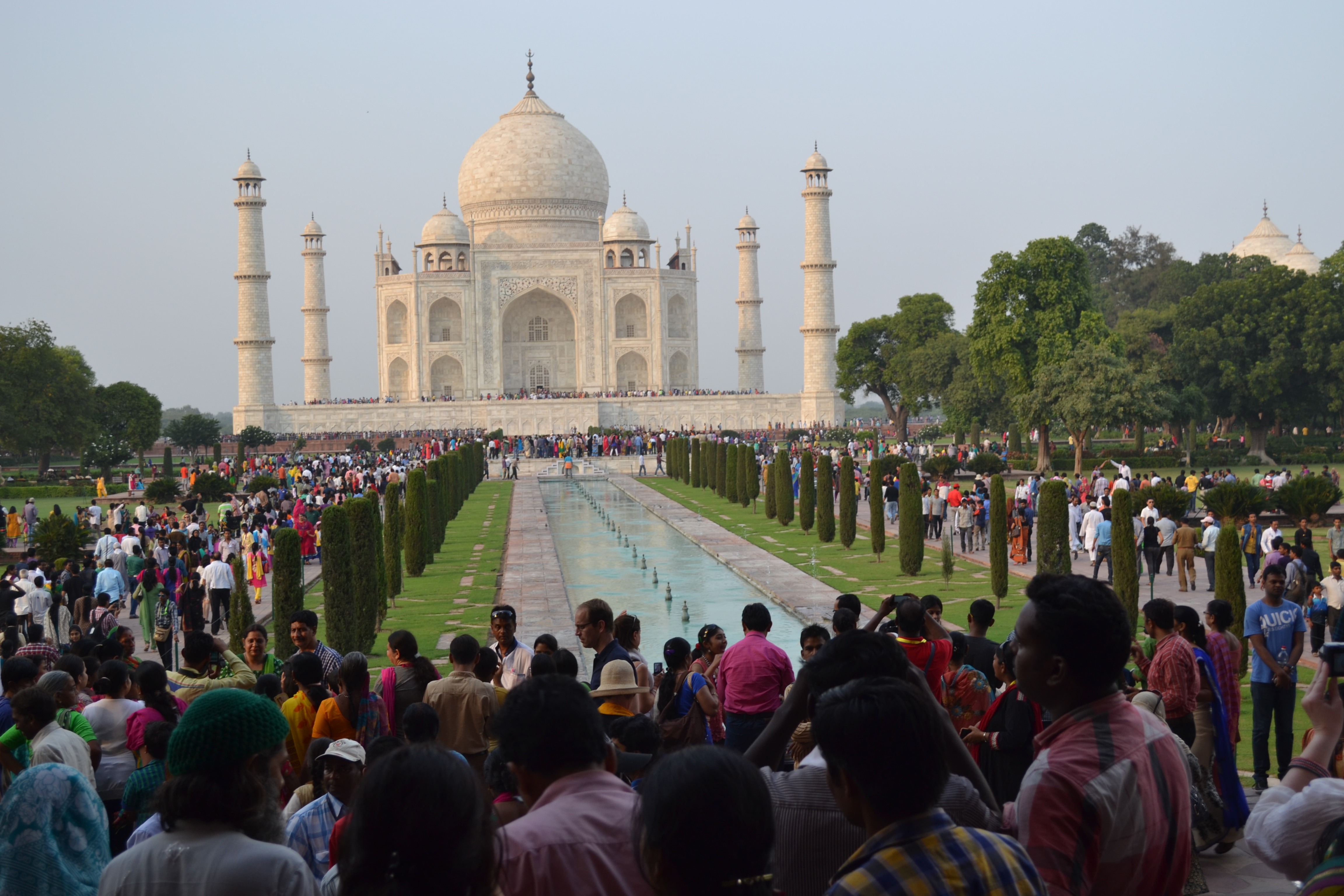 Peale lõunal tundsime me veel ennast väga hästi ning olime jälle korralikud turistid kaamerad kaenlas ning vaim valmis. Taj Mahali pilet maksab 750 INR ning see sisaldab ka tasuta sõitu piletikassast Taj Mahalini ja tagasi, pudel vett ja haiglasusse. Taj Mahalis ei pidanud me oma susse ukse taha jätma, sest sealset rahvamassi arvestades oleks vist väike tõenäosus need pärast tagasi saada.