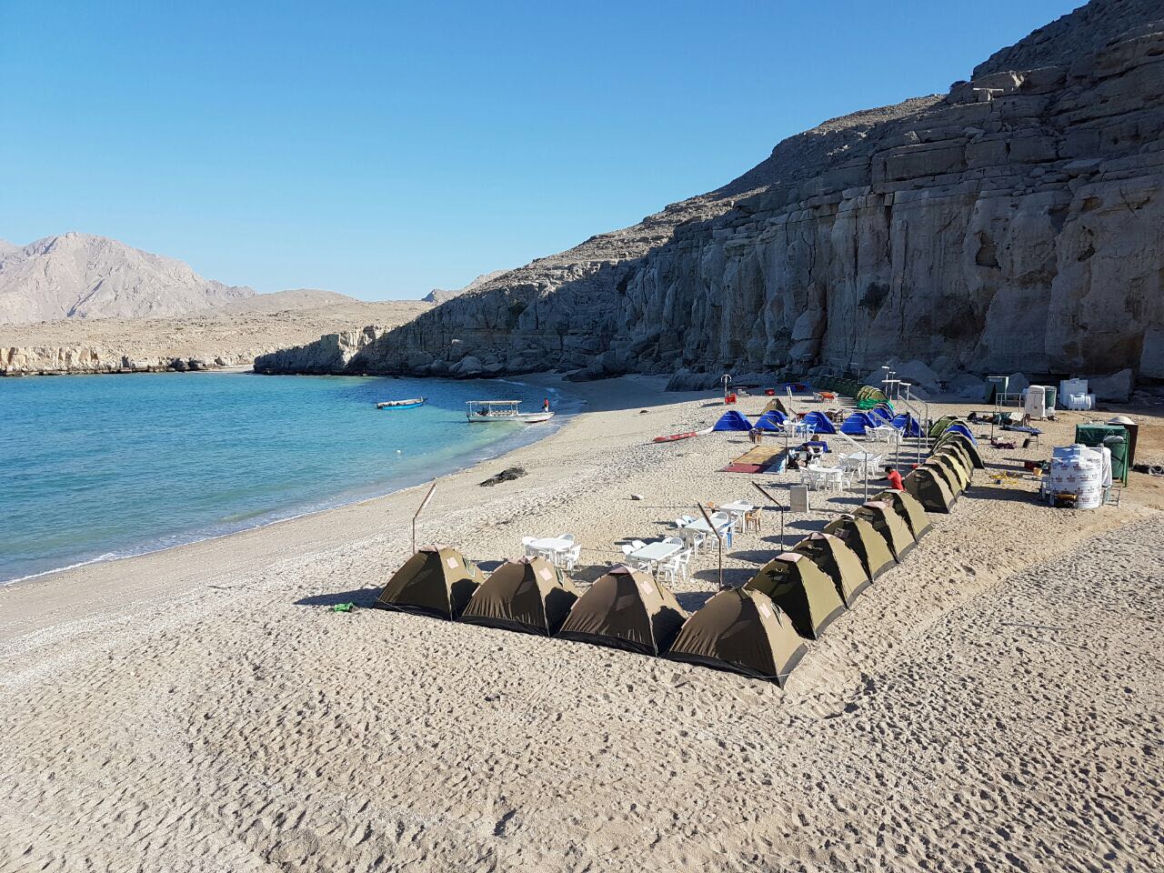 Meid viiakse paadiga üksikule rannale, millele juurdepääs on ainult mere poolt. Meile on üles sätitud telgid koos kõigi vajalikuga. Seal on WC koos pesemisvõimalustega. Rannas korraldatakse meile BBQ õhtusöök ning hommikul kostitatakse meid ka hommikusöögiga. Varahommikul lahkume rannast ning mina ja teised toredad eestlased jätkavad sõitu Khasabi lennujaama ning teid, vaprad kaasvõitlejad, viiakse tagasi Emiraatidesse.