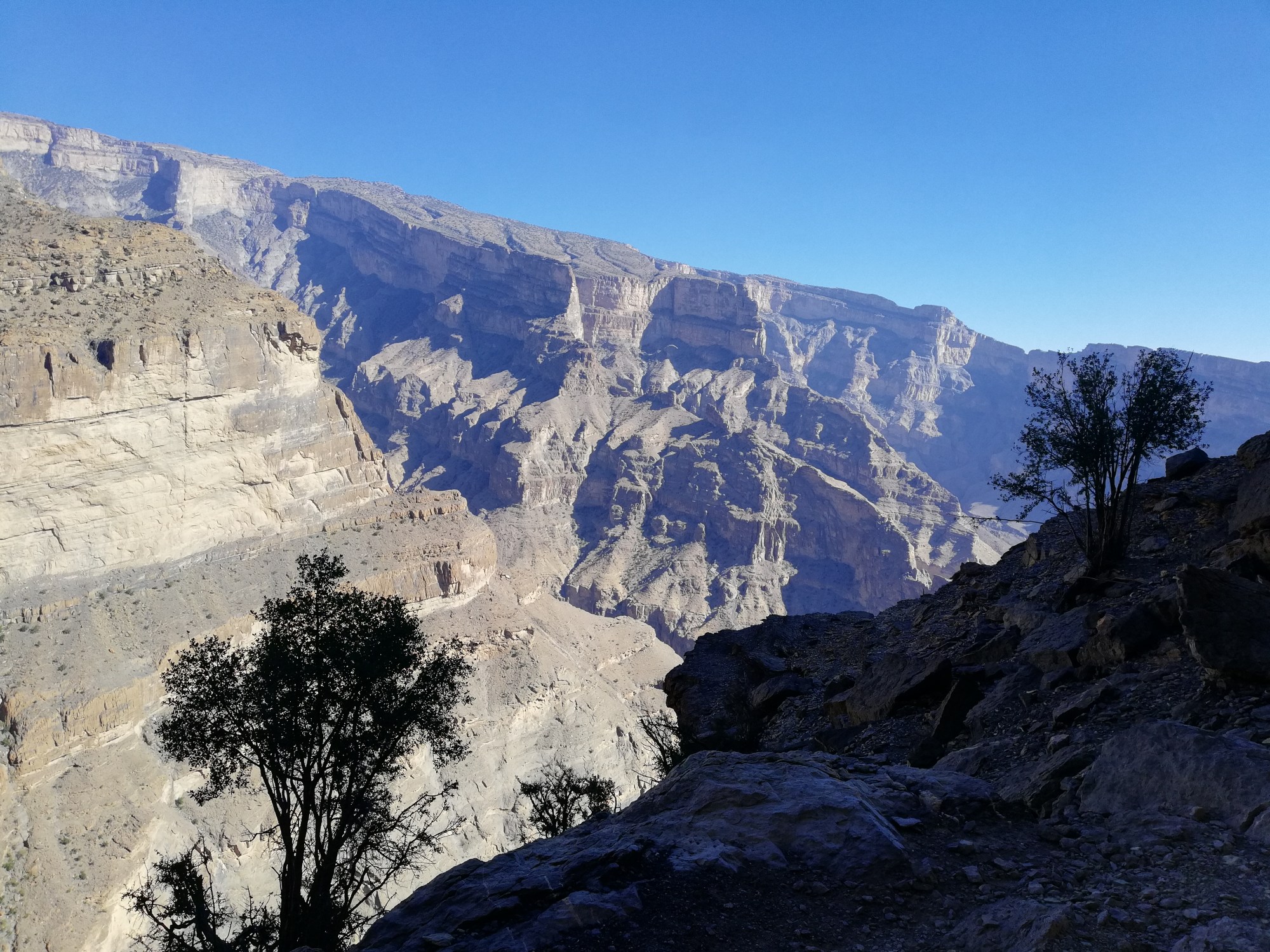 Kuigi Wadi Shab matk oli vist isegi füüsiliselt raskem, siis Jebel Shamsi vaateid ei ületa miski. Jebel Shams ehk “päikese mägi” on Araabia poolsaare kõrgeim tipp 3009m. Peale selle läheb Hajari mäestikust läbi ka “Suur Kanjon”. Meie Jebel Shamsi matk võttiski aset just “Suure Kanjoni” massiivsetel kaljuseintel.