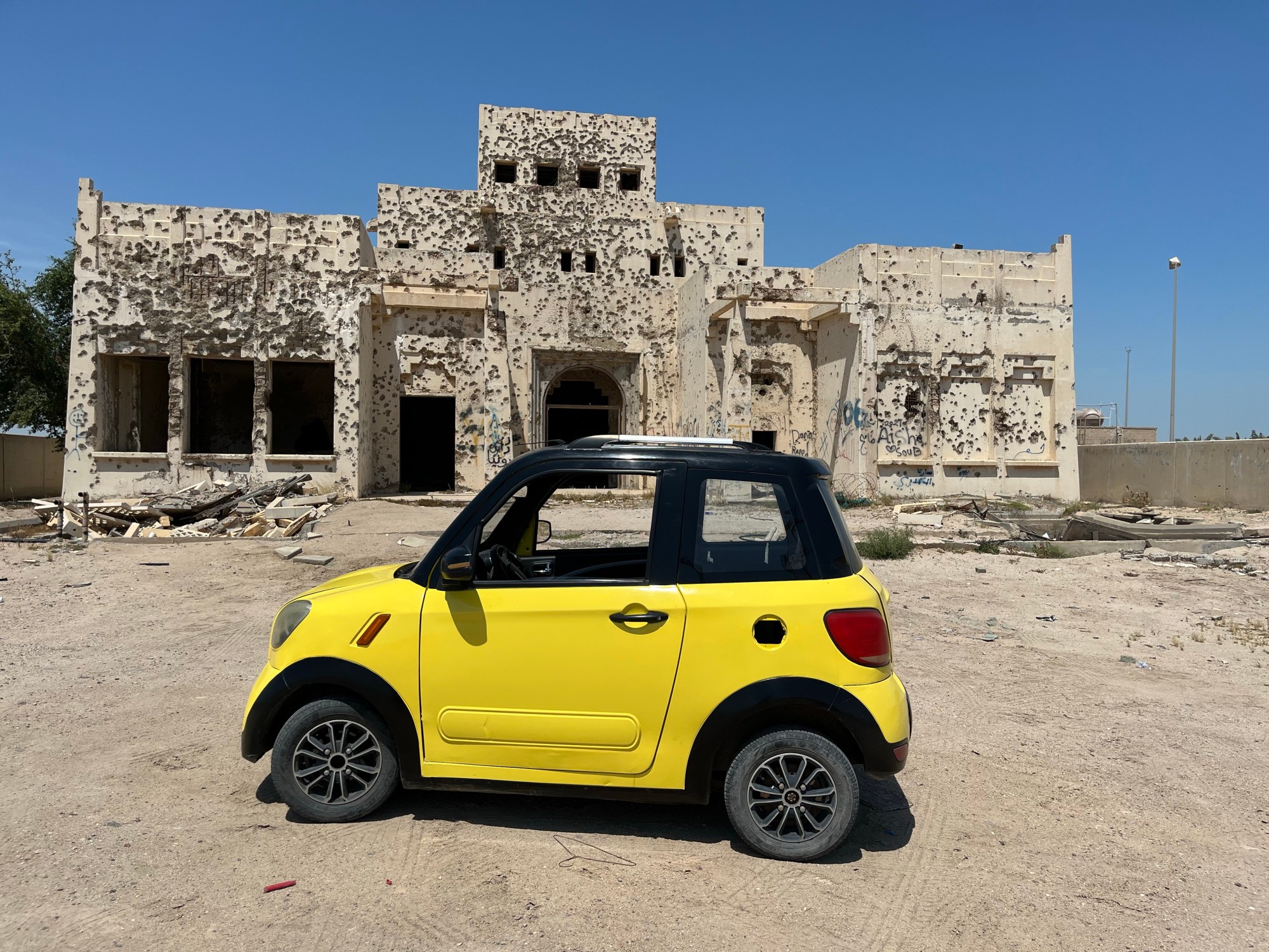 Ma sain oma kollase auto kätte. Mulle näidati ette, mida tegema pean kui auto seiskub. Ja kui suur punane nupp ei aita, siis ta jättis mulle ka oma telefoni numbri, et saaksin ta endale appi kutsuda. Õnneks ma jõudsin oma tibuga tagasi parklasse. Autoga vurasin terve saare läbi. Käisin vaatasin üle vanad sõjamasinad, mahajäetud mošee koos resordiga ning isegi kuulipildujatega sõelapõhjaks lastud panga hoone. Enne 1990-1991 sõda elas saarel kuskil 2000 elanikku, kes kõik aeti saarelt minema. Kogu saare rannaala miinistati ning kasutati sõjategevuseks. Täna on Failaka saar Kuwaidi koosseisus tagasi, kuid osaliselt kontrollib saart Kuwaidi sõjavägi. Suur osast elanikest ei ole tagasi pöördunud ja väga väike osa majadest on elamiskõlblikud.