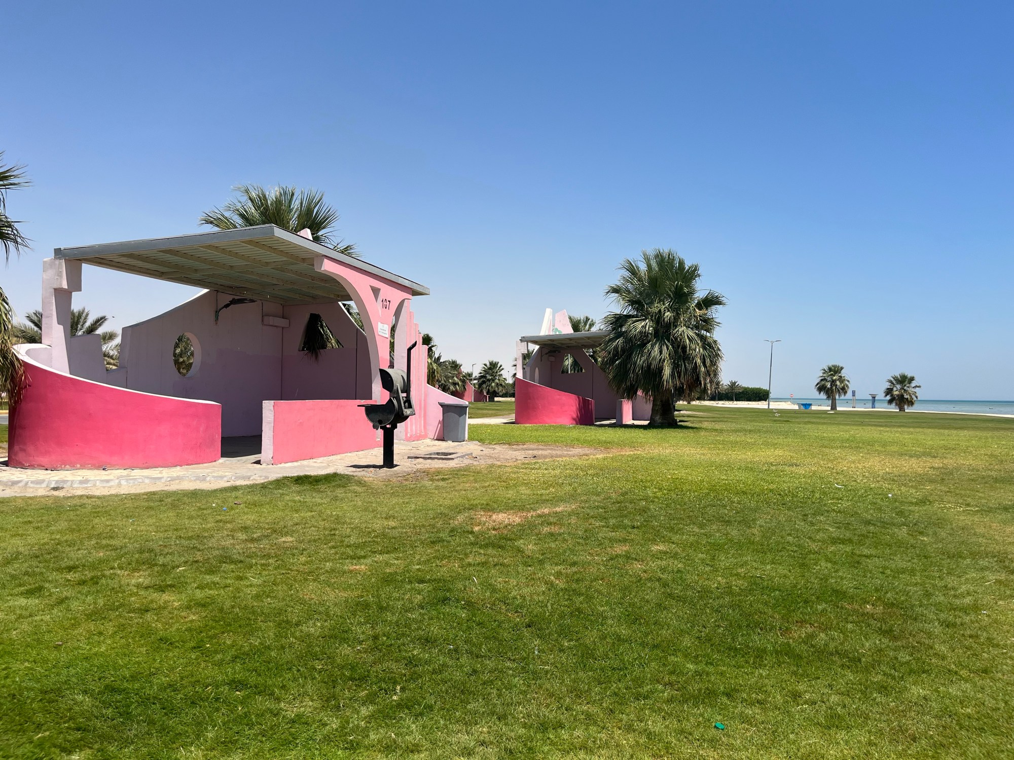 Mida kaugemale ma Dammamist jõudsin, seda kehvemaks teeolud läksid. Ühel hetkel sain aru, et vastassuuna vööndis on kergem liigelda – vähem auke. Al Uqairi jõudes olid teeolud ka võluväel paremaks muutunud. Kogu Al Uqairi rannaala on avalikud rannad koos grillimismajakestega. Rannad olid eraldatud ning igale rannaalale oli omane isemoodi värv. Üks rand oli roosa, teine sinine, roheline, kollane jne.