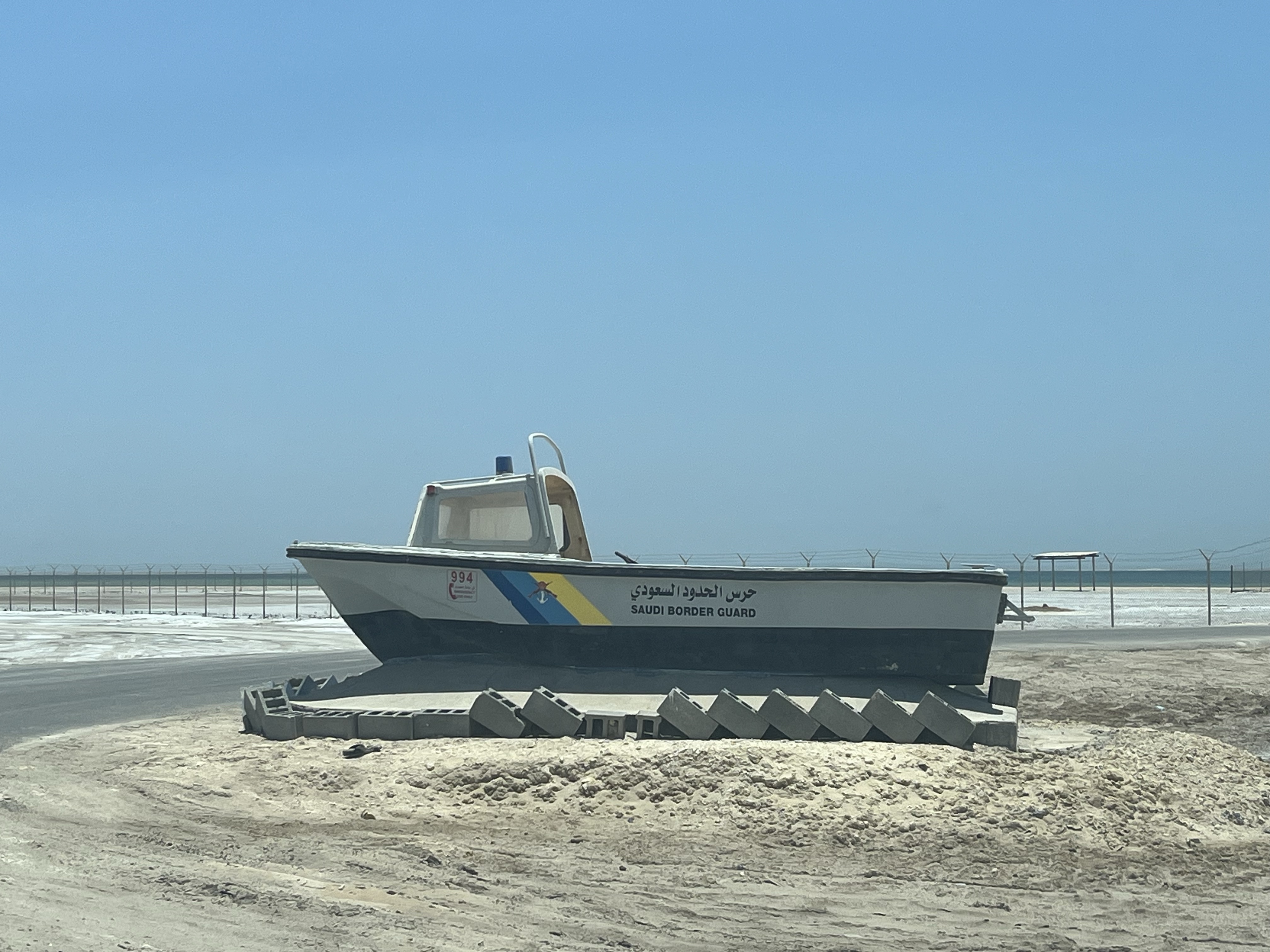 Kuna ma peaväravast sisse ei saanud, siis läksin vaatasin, mis maja taga toimub 🙂 Korraga oli mul posti peale pandud paat ja eemal paistis hoone okastraatidega ümbritsetud. Ma olin jõudnud Saudi Araabia piirikontrolli 🙂 Nii palju oidu mul oli, et autol suund ümber pöörata ning sealt ära sõita.