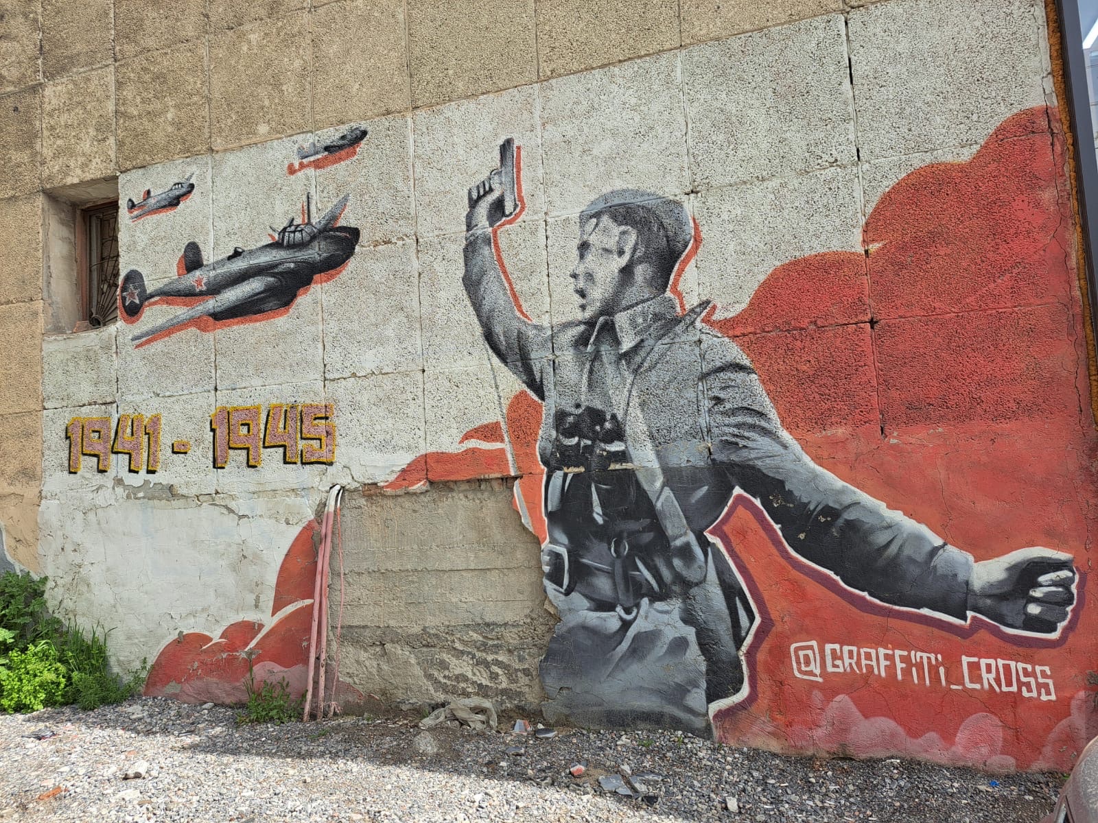 Pargis ringi jalutades märkasin suure posti peal olevat UI lennukit. Jalutasin lennuki juurde ning sealt hakkas park ilusamaks muutuma. Tuli välja, et Abay park on II Ms. memoriaalpark ning sinna oli koondunud mälestustahvlid, suured betoonist ja graniidist skulptuurid, terve rida tanke ning muidugi ka mõned “tundmatu sõduri” kujud.