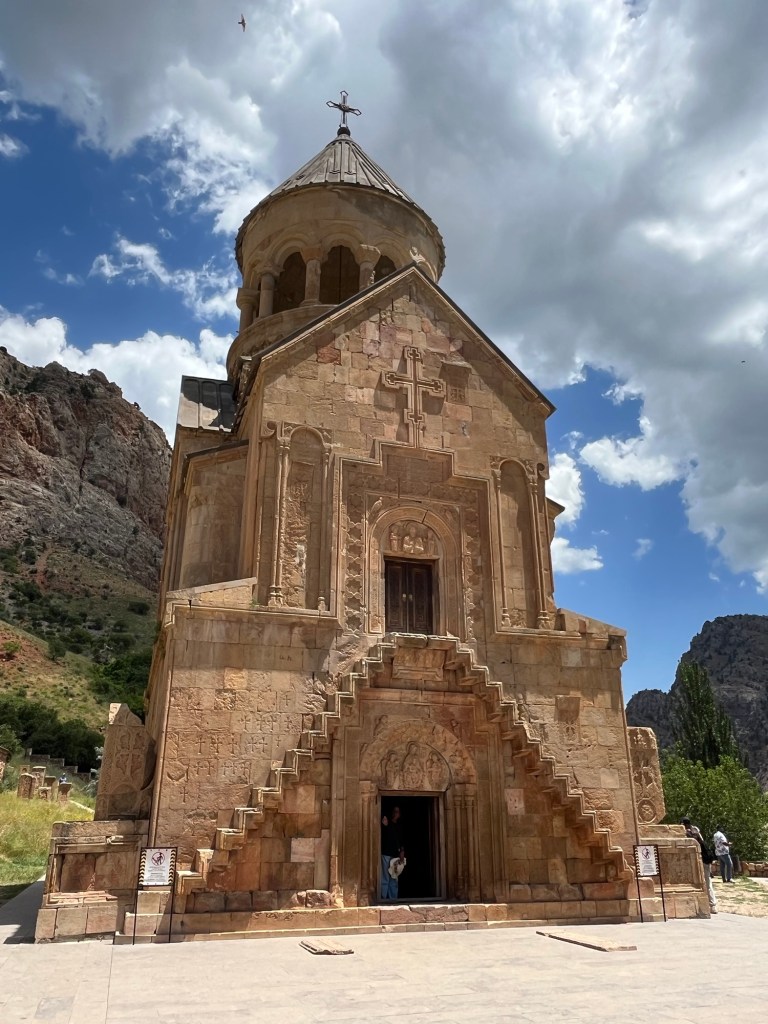 Edasi liikusime järgmise kloostri juurde – Noravank. Noravank eesti keelde tõlgituna tähendab “Uus klooster”. Klooster ehitati 13. sajandil Amaghu jõe kohal kitsa käänulise kuru astangule. 13–14 sajandil sai sellest Syuniku provintsi piiskoppide residents. Legendi järgi oli kloostrisse peidetud tükk tõelist ristist, mis oli määritud Kristuse verega. Noravanki skulptor sai kuulsaks pühakute, sealhulgas Jeesuse, Aadama ja isegi Jumala kujutamisega silmatorkavalt inimlikes poosides.